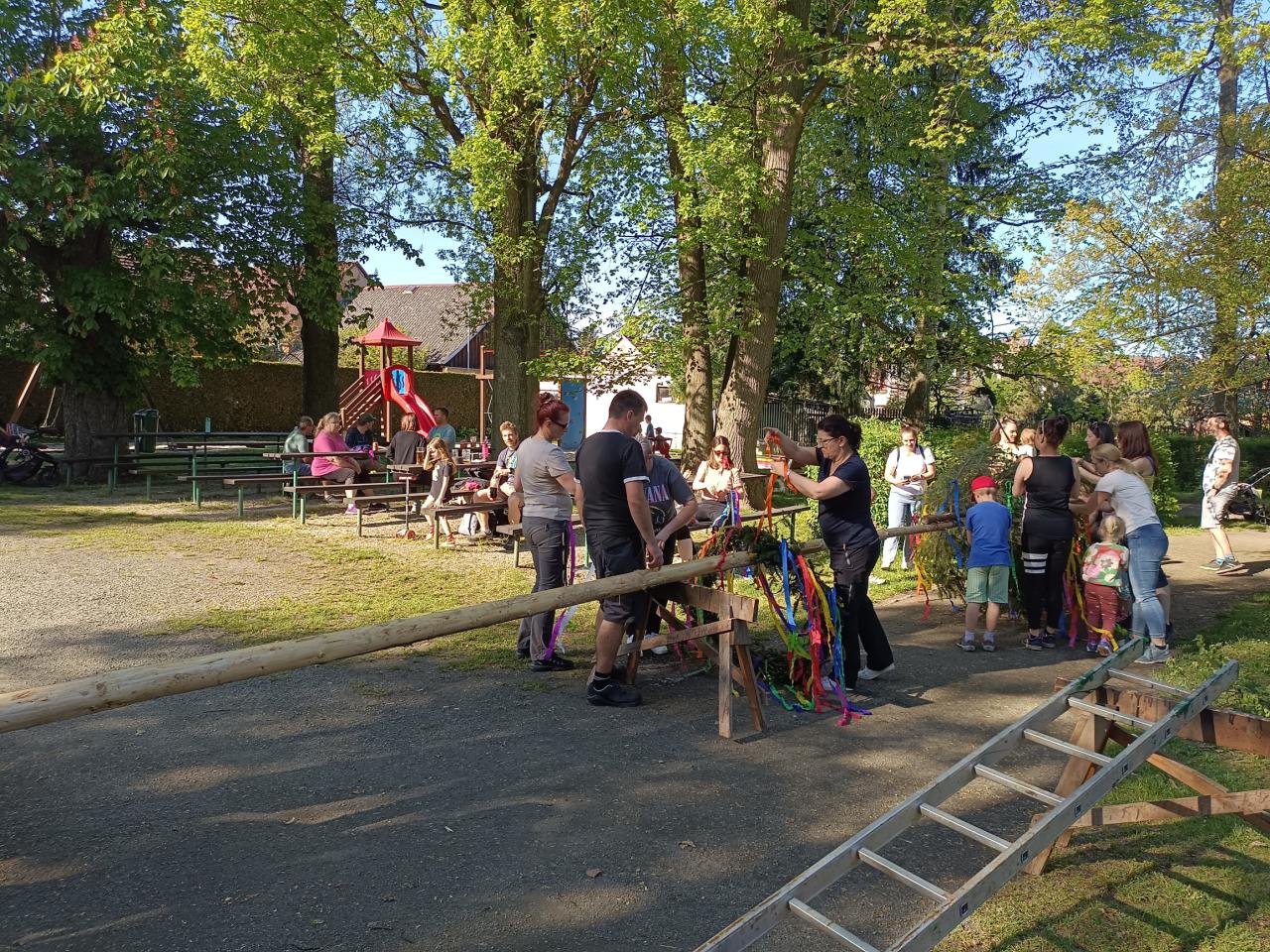 stavění a zdobení máje